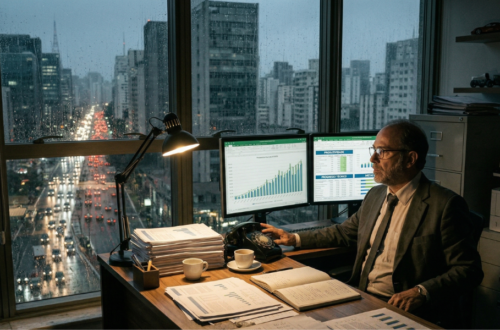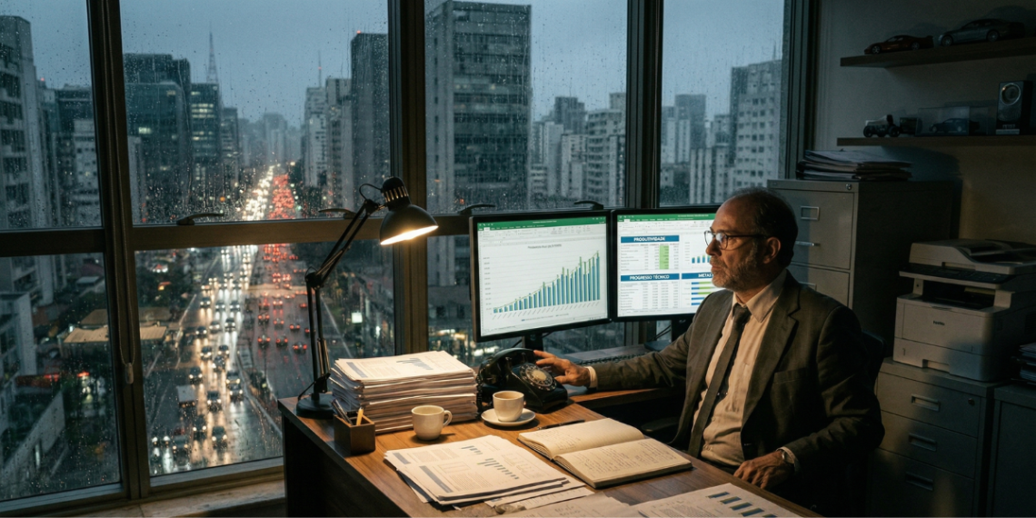 O escritório de Inácio cheirava a café velho e papel impresso. Sobre a sua mesa, relatórios e mais relatórios formavam torres que ameaçavam desabar a qualquer instante. Ele era o Analista Chefe do Departamento de Medição do Progresso, um cargo que, segundo seus superiores, era o mais importante da nação. Para Inácio e seus colegas, o mundo era simples: o “progresso técnico” era uma linha em um gráfico que devia apontar sempre para cima. E como se mede isso? Com toneladas de aço produzidas, sacas de grãos colhidas e a velocidade das linhas de montagem. Naquela noite chuvosa, Inácio revisava os escritos de um de seus teóricos favoritos, um homem…