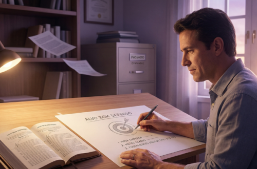 A porta de madeira pesada cedeu com um rangido, revelando um teatro abandonado. Eu não sabia como havia chegado ali, mas o cheiro de poeira e veludo mofado era inconfundivelmente real. Como de costume, entrei de cabeça baixa. Meus olhos rastreavam o chão, os rodapés, as pontas dos meus próprios sapatos. Era um hábito antigo: caminhar encolhido, como se tentar ocupar menos espaço no mundo me fizesse invisível. Sentei-me na última fileira, na poltrona mais escura que encontrei. Foi então que as luzes do palco se acenderam num estalo. Lá em cima, sob o foco de luz amarelada, não havia atores. Havia eu. Ou melhor, vários de mim. Meus olhos…